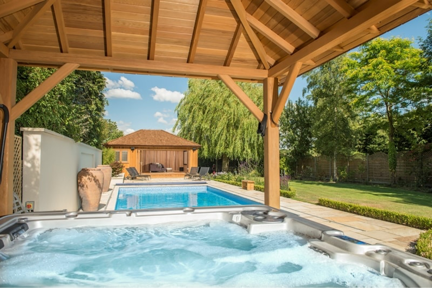 Our bespoke hot tubs are custom-made to fit your exact vision. From size to features, every element is tailored to your preferences, allowing you to design a unique hot tub that perfectly complements your space and style.