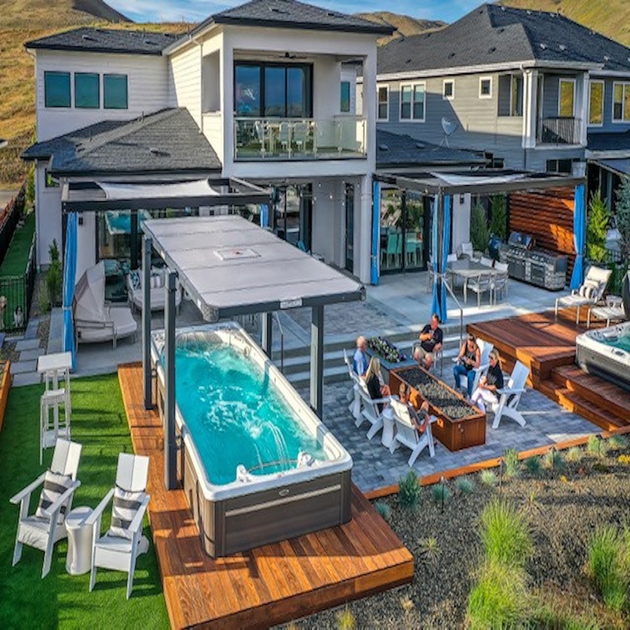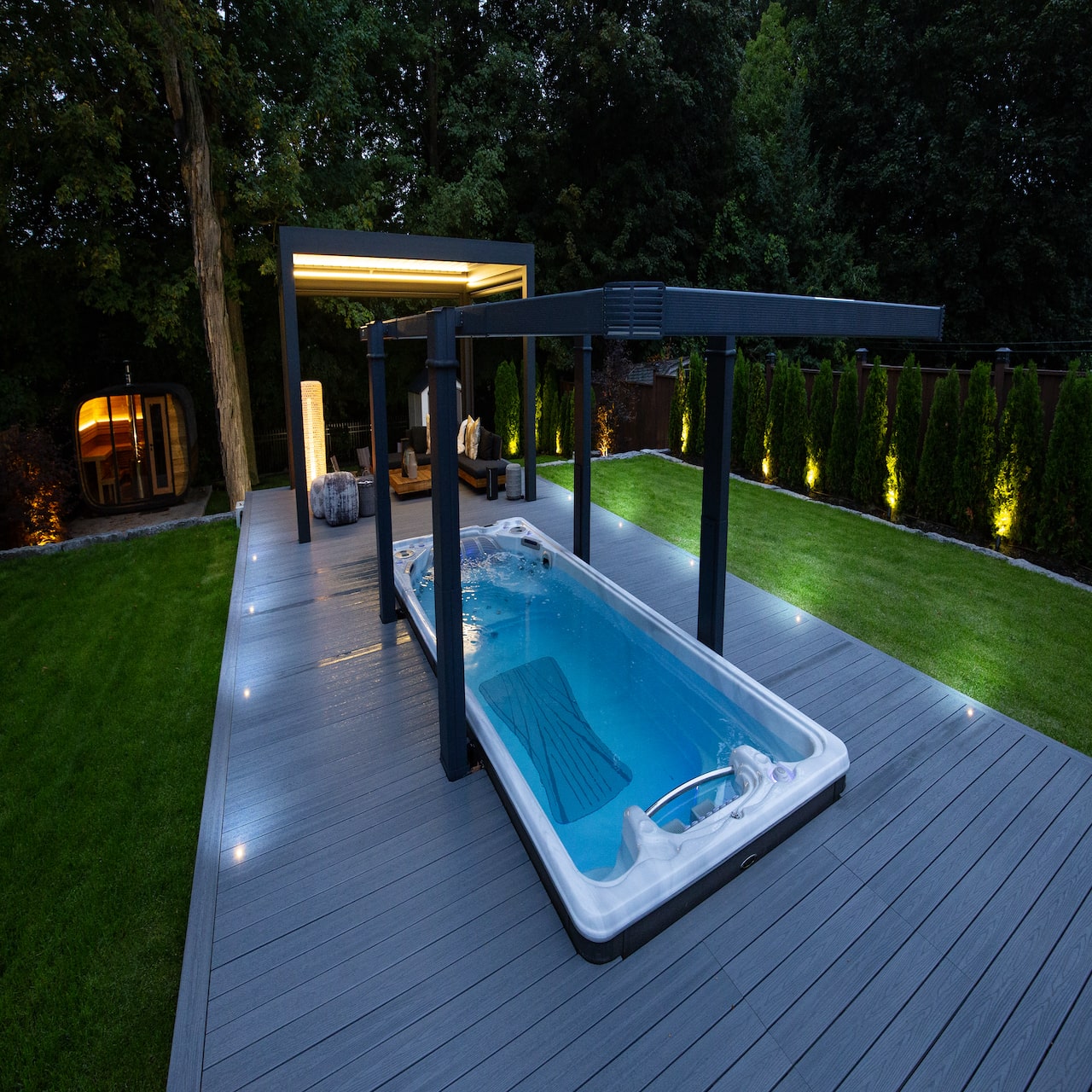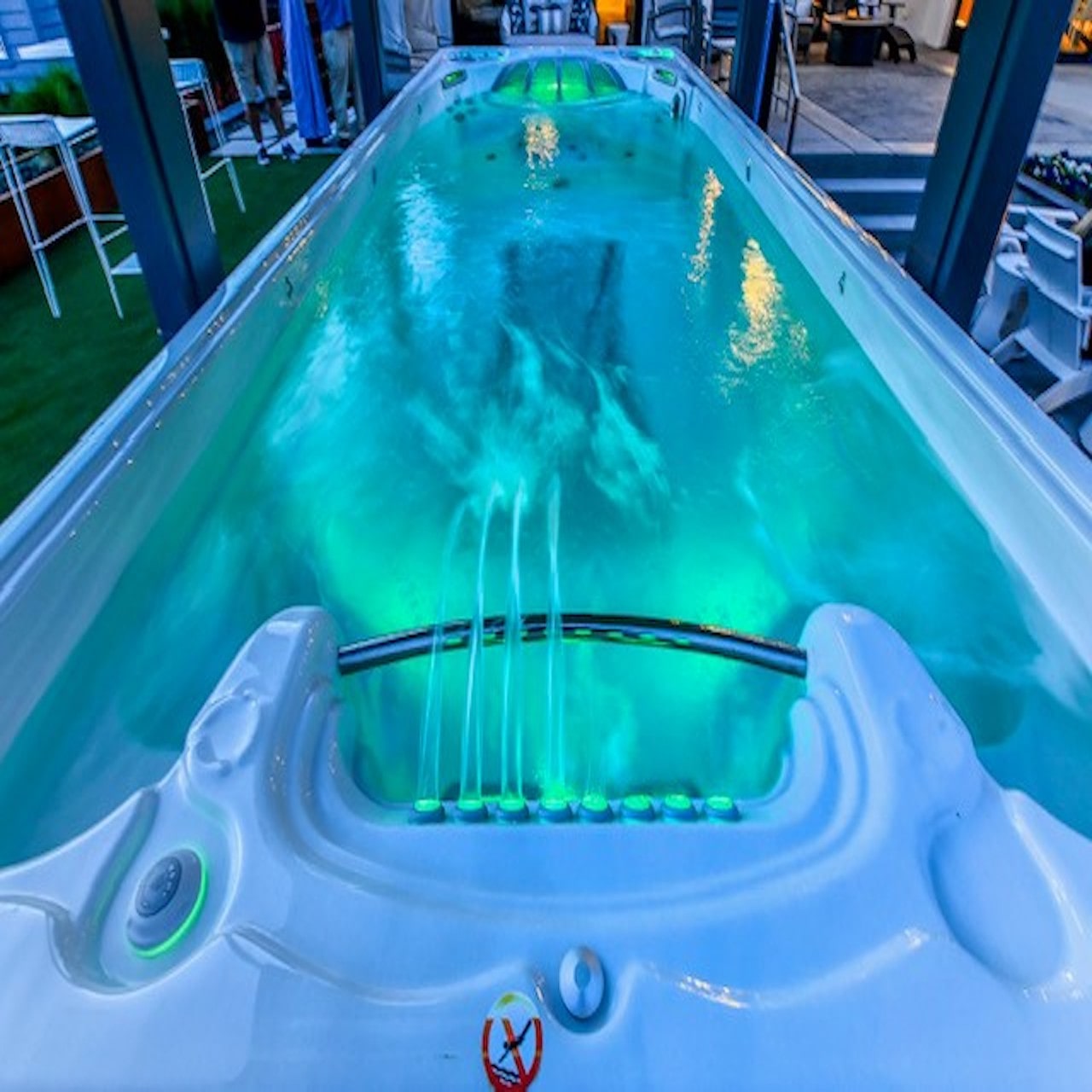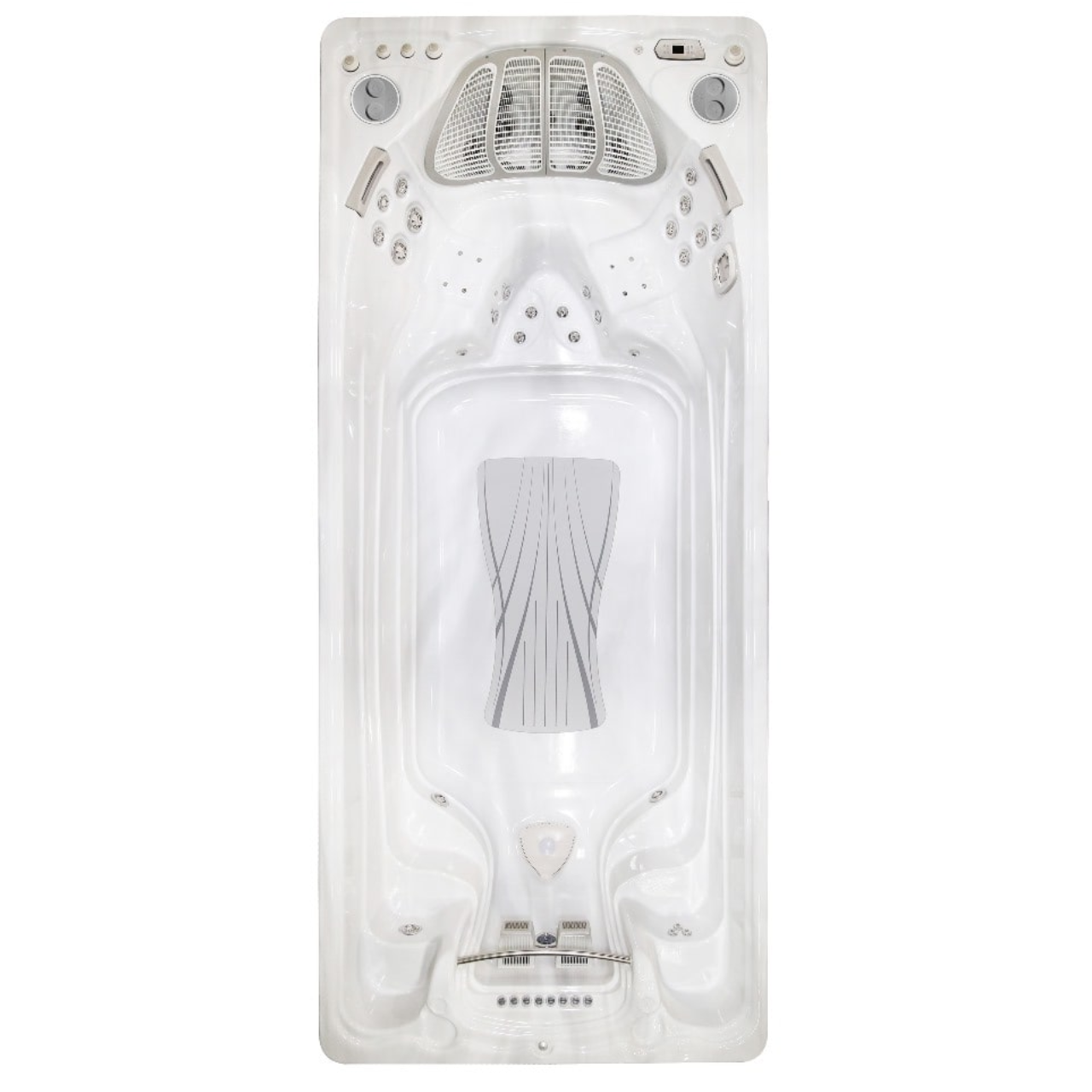 The Flagship self cleaning Executive Trainer is a game changer. Owned by our GB Olympic swimmers, triatheletes and budding swimmers, plus those discerning families who appreciate that people have different swimming abilities. Experience a huge pool area with unparalleled aquatic fitness with the 19′ Self Cleaning Executive Trainer swim spa, featuring adjustable swim currents, complete control and therapeutic hydromassage seats.