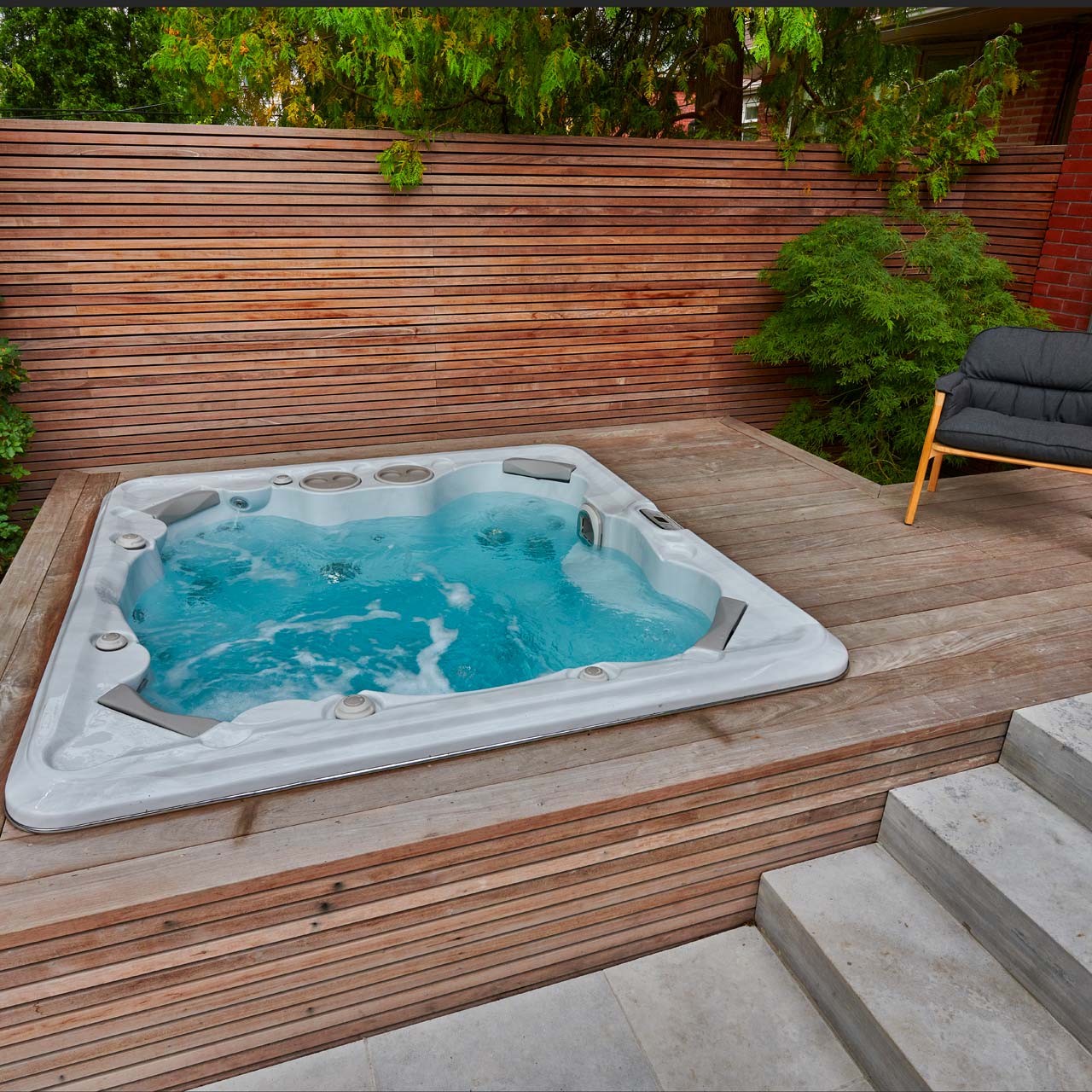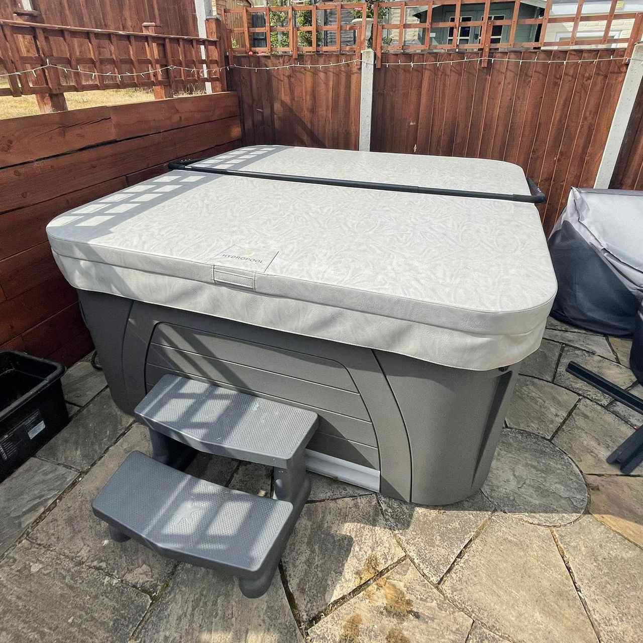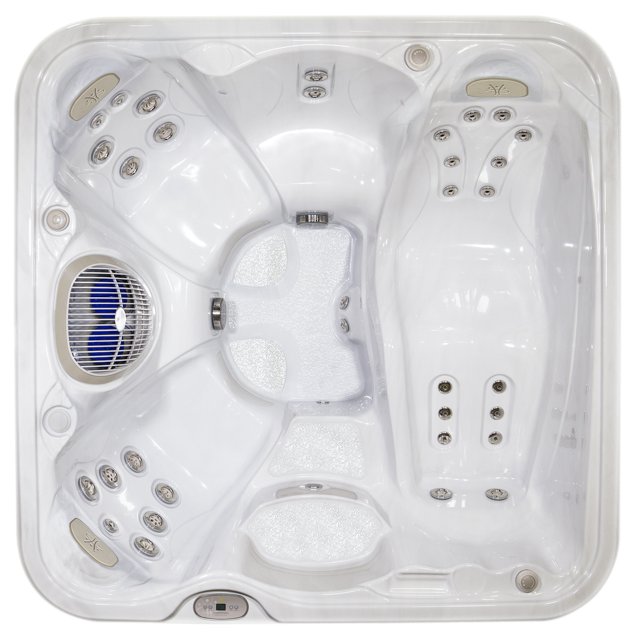 Indulge in ultimate relaxation with the Hydropool Serenity 4500 hot tub, featuring a luxurious no-float lounger and sumptuously spacious seating for four.